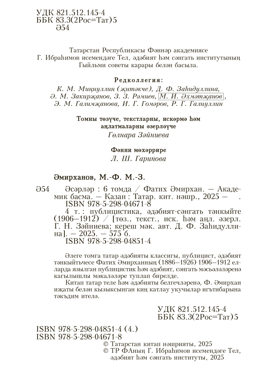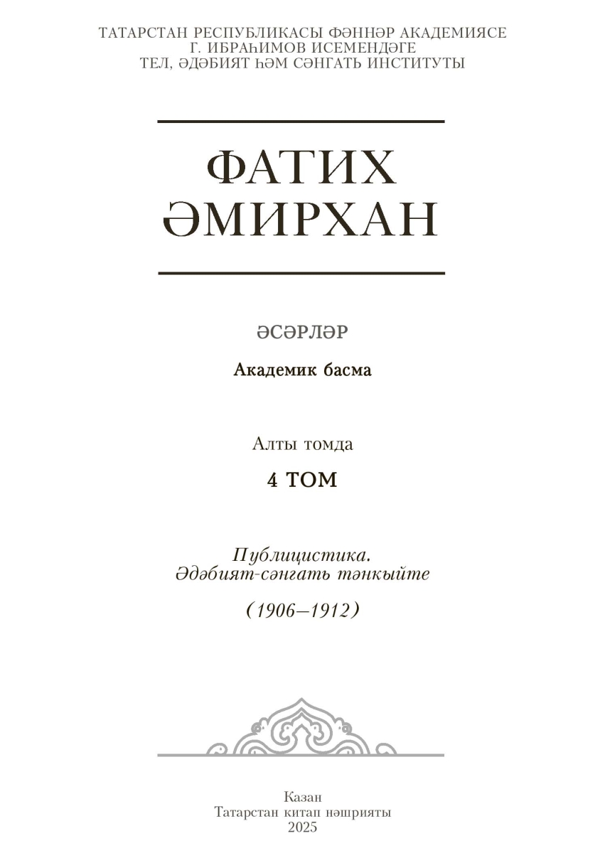 | Наименование на татарском | Фатих Әмирхан. Әсәрләр. 4 том | |